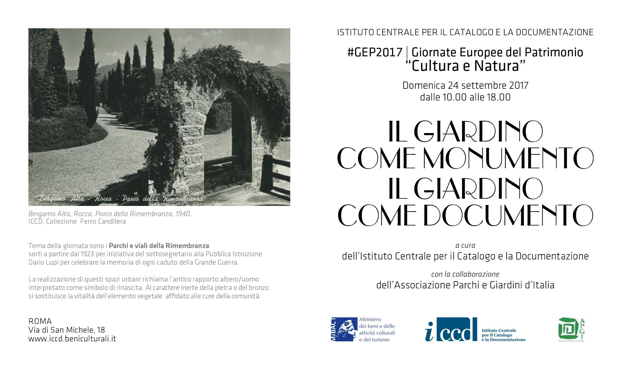 #GEP2017 - IL GIARDINO COME MONUMENTO, IL GIARDINO COME DOCUMENTO