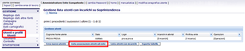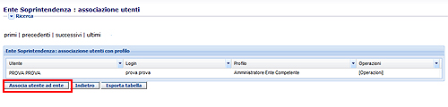 Cliccare sul pulsante Lista associazione utenti ad ente posto sulla barra inferiore.