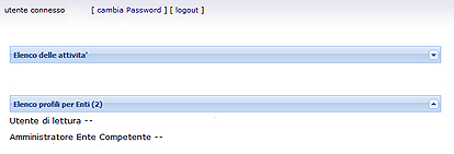 Una volta conclusa l’operazione l’utente avrà accesso all’ente a cui è stato associato tramite il link posto nella home page. Entrando nell’area di lavoro avrà a disposizione le funzioni previste per il profilo scelto.