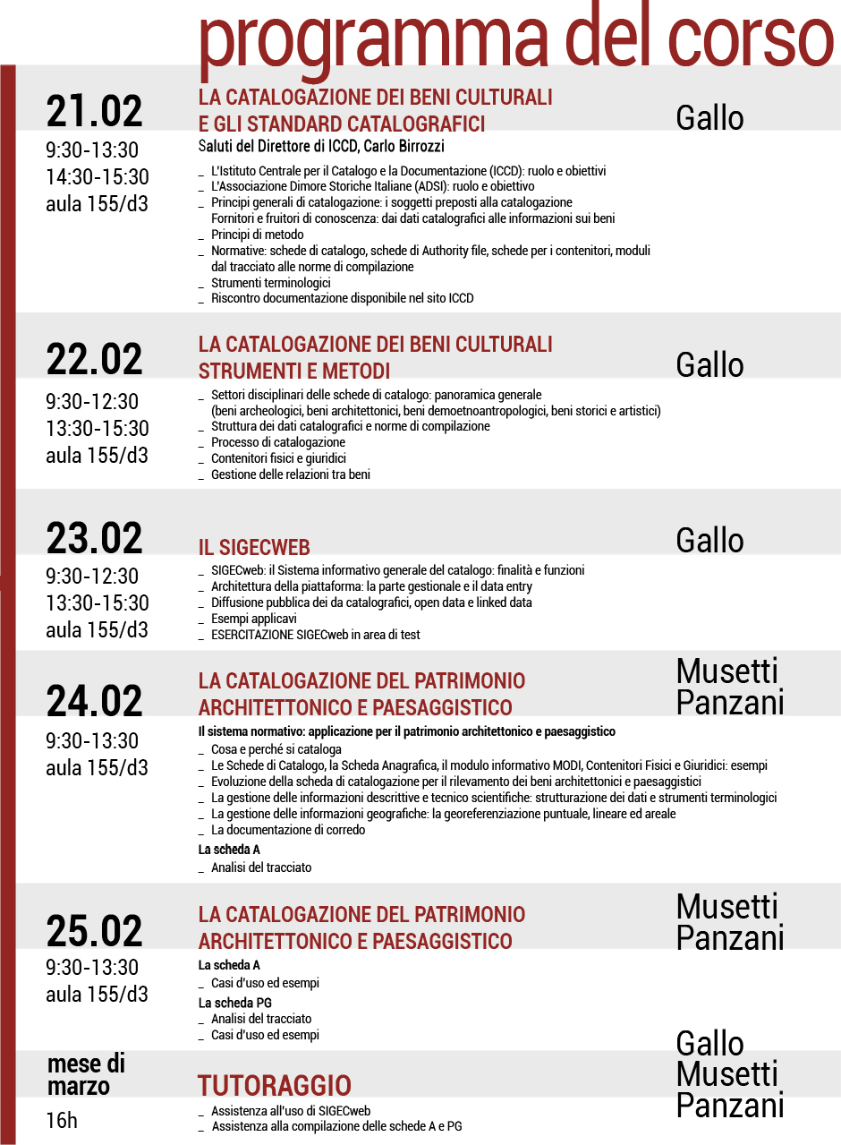 L’Istituto Centrale per il Catalogo e la Documentazione (ICCD), il Dipartimento di Ingegneria Civile Edile e Architettura dell’Università Politecnica delle Marche (UNIVPM) e l’Associazione Dimore Storiche Italiane-Sezione Marche (ADSI) hanno organizzato un corso dal titolo “La catalogazione del patrimonio architettonico e paesaggistico” che ha avuto luogo dal 21 al 25 febbraio 2022 presso i locali della Facoltà di Ingegneria dell’Università Politecnica delle Marche, sede di Ancona.