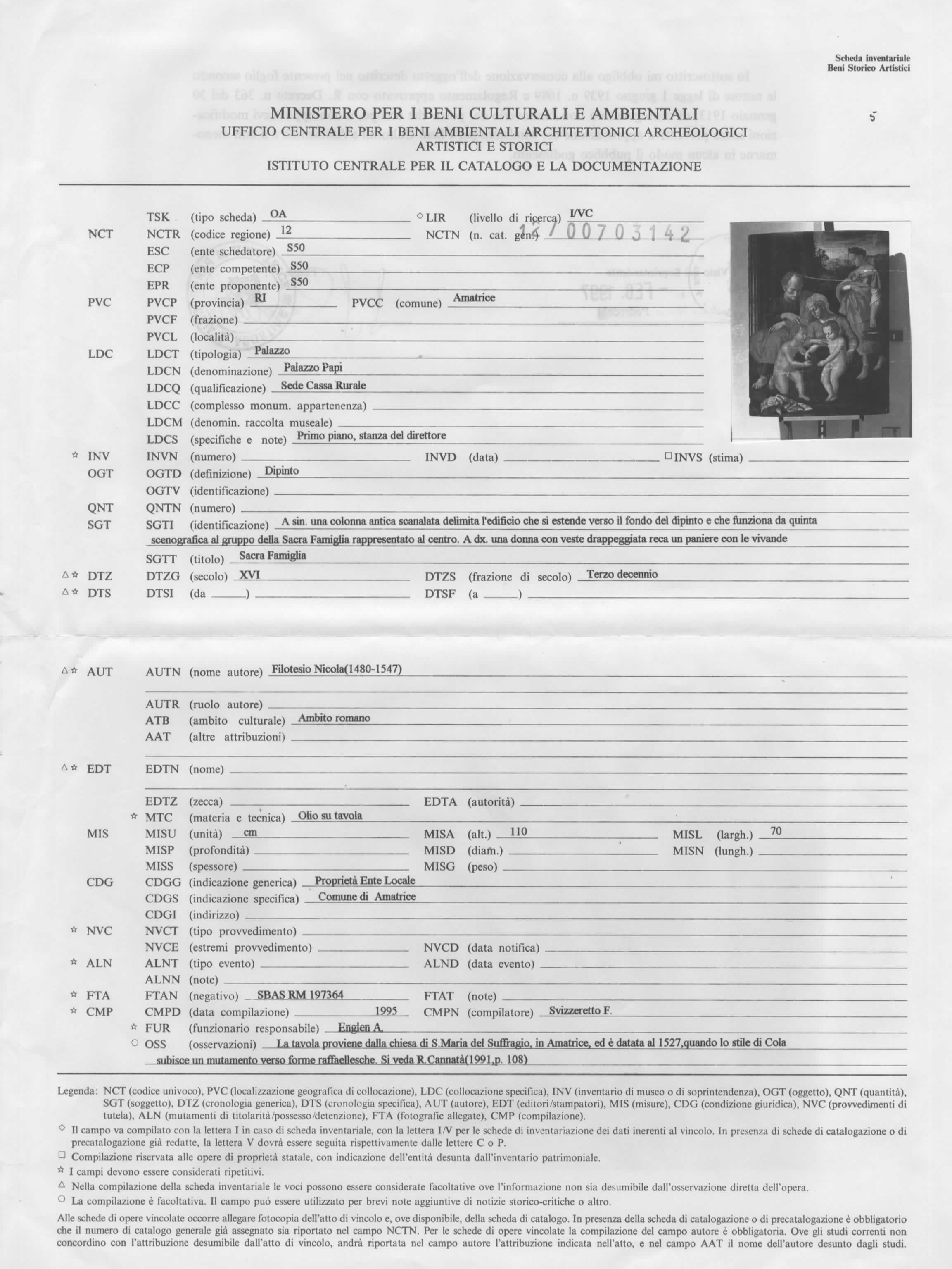 L’emergenza creata dal sisma che ha colpito l’Italia centrale il 24 agosto scorso, ha immediatamente mobilitato l’unità di crisi del MiBACT nelle aree interessate dalle principali scosse. L’Istituto Centrale per il Catalogo e la Documentazione (ICCD) e l’Istituto Superiore per la Conservazione e il Restauro (ISCR) hanno provveduto a realizzare report di sintesi sui beni residenti nei comuni dichiarati ufficialmente danneggiati dal sisma, trasmettendoli al personale coinvolto nella valutazione dei danni al patrimonio artistico.