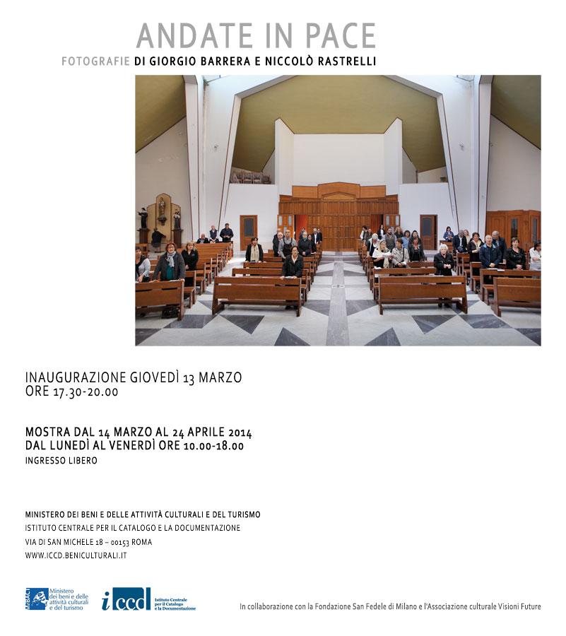 Le fotografie di Giorgio Barrera e Niccolò Rastrelli mostrano una ricognizione delle architetture ecclesiastiche italiane post-conciliari, riprese al loro interno durante la funzione sacra dalla posizione del sacerdote versus populum, secondo la riforma liturgica operata dal Concilio Ecumenico Vaticano II.